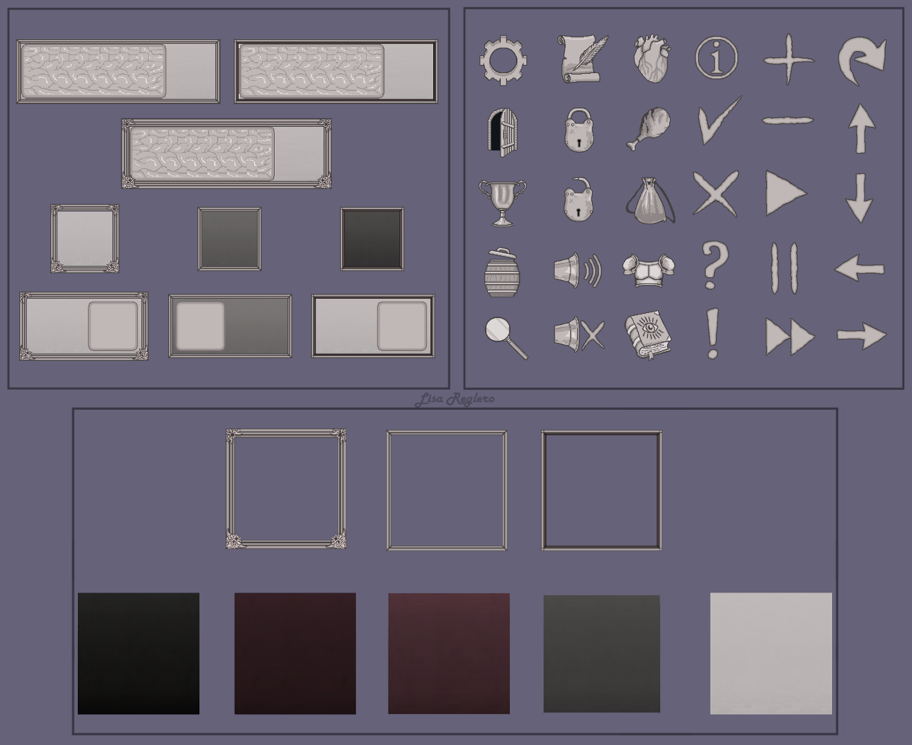 This asset pack is a great UI base for games with a darker medieval theme and it's very customizable. All the assets are in greyscale so you can color them as desired and most assets are easily scalable without issue.